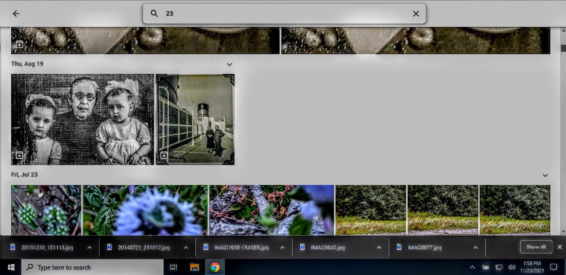 All of the pictures were taken on the 23rd of the month from randomly selected years in my google photos — except inexplicably, the two black and white photos. The first of my Latvian grandparents landing in the US after leaving the zone of post-Nazi Germany and the other nameless ancestors, who prove we are descended from eldritch mediums and the stain of cultish madness runs in our DNA.