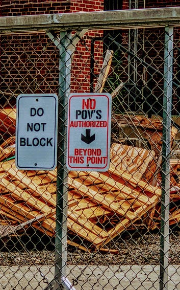 “It’s hard to remember what it was like before glassine surfaces augmented our real, militarized our unconscious. Now when we want to ‘kill the cop inside’ we fear no one will remain. This view at the back gate of the National Guard Armory gets deeper and funnier indicating we’re on the right track”