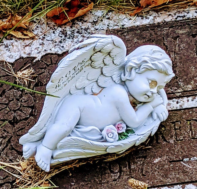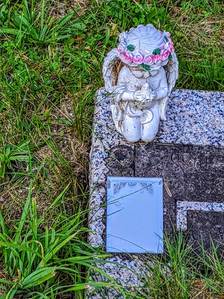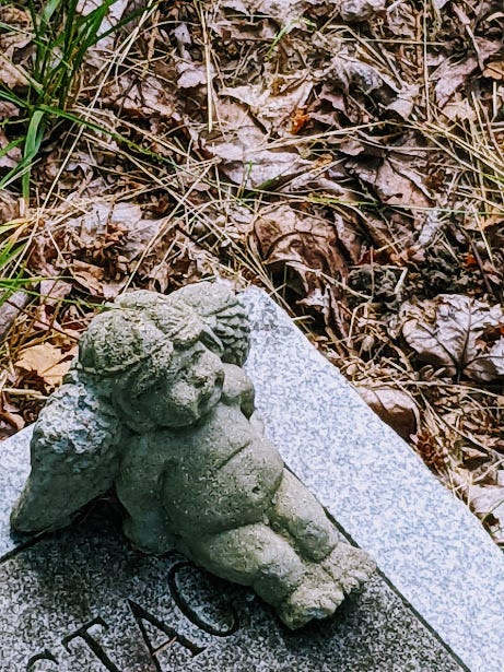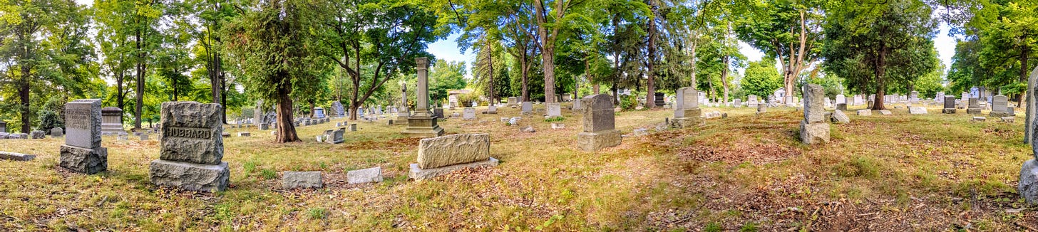 This morning I decided to sit in the cemetery before the heat peaked and the humidity fulfilled its promise — this is the view from beneath the tree