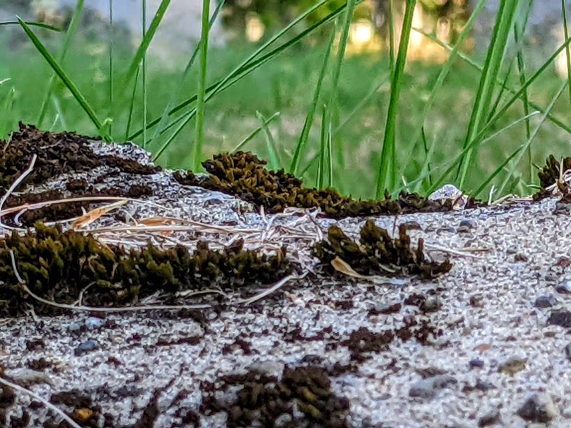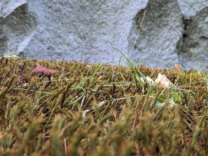 Across the street — there is a lawn — mostly moss — but that’s a whole other city — it’s hard to remember — for all of us — it doesn’t have to be this way — nor was it always