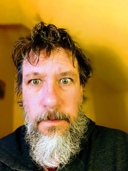 I’ve never self-identified as a narcissist. admit it. My selfies tend to have a look of surprise or befuddlement. I rarely, actively, look in mirrors. And so my own image comes as a surprise, a Rorschach test for some sort of embodied reality. When I took this one, I thought to myself “Rasputin is that you?” I’ll never forgive my last hair-stylist for casually trimming my brow antennas without due consideration that she may be hampering me in some way. It does surprise me when I find my eyes are hazel or grey, depending on my mood. More and more I’m rejecting happenstance; it leaves me little room for pride.