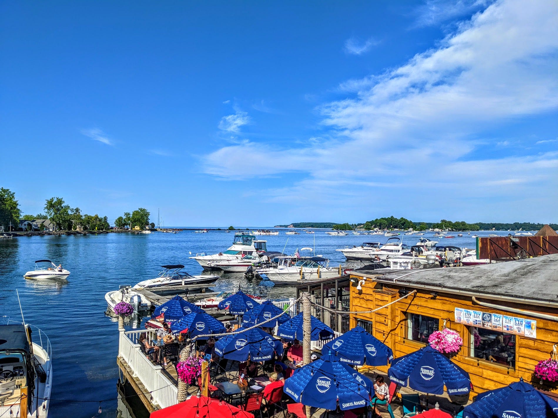 People gathering together — in the shallows — pretending everything is going to remain the same