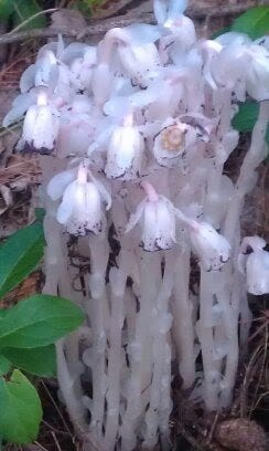 “8/19/2013 - Later the day of the Blue encounter, I spoke with someone who had used Ghost Plant to counteract a mild psychotic break successfully. I also discovered it was not a fungus as I grew up thinking, but a fungal parasite or mycoheterotrophic, a previously unknown classification. After our discovery of the carnivorous Lycaenidae, and the encounter with the Blue Friend, what other wonders does this incarnation hold? I can’t wait to find out! Of interest to those paying close attention to our current fieldwork, the subject’s mouth turned black when consuming Monotropa Uniflora. This explains the incongruous picture in the Hierarchies Entangled Web glyph above ^ as well as suggesting we may be able to use the fungal parasite as an intervention for psilocybe encounter cessation?”