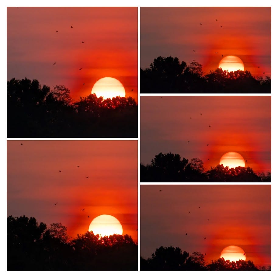 How lucky you are Con/Jur/d, 6/5/2025 So what? If we stumble off the boat at 5:30 AM on to a dock, which whimpers and groans along the ill fitted joints, the squeak of wood roll of metal bolts, reflected in our knees/elbows our 2-night sea legs. So what? As we scamper to use a bathroom which has been scrubbed since winter storage, unlike. our Head. serviceable in a pinch So what? When we notice 2 black pockets, meant to be inside, flopping on the. out side of these shorts grabbed in the crepuscular dawn So what? NO ONE TO SEE no one will notice our inability to dress in the bow bunk dark while the floor/ ceiling / walls rise and fall as if, like YOU they are not fully awake, wooden panels dreaming of once being grounded, only the sky moves So what? When you've used the faculties you go upstairs to make coffee, and you stop and stare, at the immensity of the sky the deep red orb of the sun, creatures flying before it, like they have since we've learned the trick of wings So what? You've been grounded you can move into the in-between the horizon between land and sky between calm and wave, even in prison a cot, a squat, behind bars you can pass between dust and mote. So what? Legless, wingless, no need for a response to gravity, no need to respond to the circumstance of an embodied world, dancing among a BILLION/ BILLION others So what? YOU can choose this passing between. When you see fit. And you chose this NOW to be finally. FREE