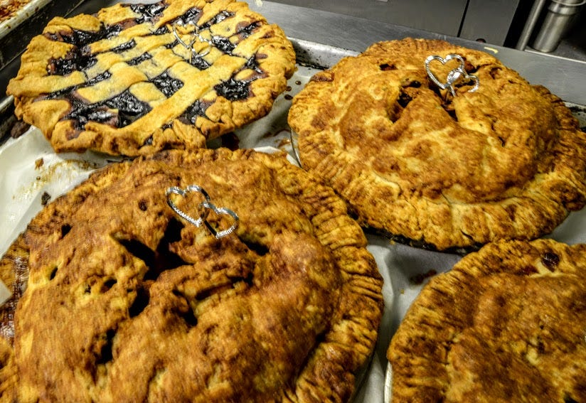This is why I think there was such a good response to yesterday’s Gate(Less), the mention of key-lime pie. I didn’t have any pictures of key-lime pie covered with chocolate. For me, our reader’s obvious enthusiasm is warranted, but the idea of eating it is better than the actuality, imo. However, among the unbeatable pie flavors above is a Jalapeno-Apple pie that I ate in a dream one night back in San Franciso. Upon awakening, I immediately called my brother and told him. He was possessed by the Muse and created an Apple-chipotle pie with cheddar crust, absolutely in the top 1% of pies I’ve ever eaten. Don’t tell me you can’t live your dreams I know better. If you couldn’t make it to the wedding where the Master Piemaker A.A.A created these mouth-watering creations by looking at the pies above you are experiencing a second-hand dream, or as I said to a friend this weekend “The Russian-doll dream”