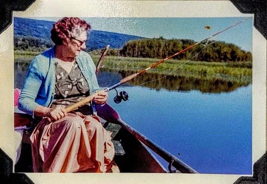 “Here’s a better picture of her — If you look above the rod you can see one of the transdimensional drones following my family from the old country”