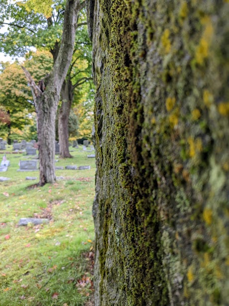 Gone, gone, gone beyond10/6/2022 Day 1 of Annual Retreat (HERE)Con/Jur/dOct 06, 202261ShareThe day starts appropriately — with fog-enshrouded gravestonesMy mind is awhirl — with useless thoughtsWhy am I in such a rush to get nowhere?Everything is seen as a reflectionWhat hope do any of us have? To see things as they are — without filters or the subtle distortions of a looking glass?A last name joke — reduced to its essenceDo the Mossy Paths ever end? Where do they end? Where do they begin?As Rhyd Wildermuth says: There are Secrets of CrossingWhat’s there? I don’t know — I’ll see you thereMuch love,Con/Jur/d, 10/6/2022I’ll see you there/hereSubscribePreviousNext