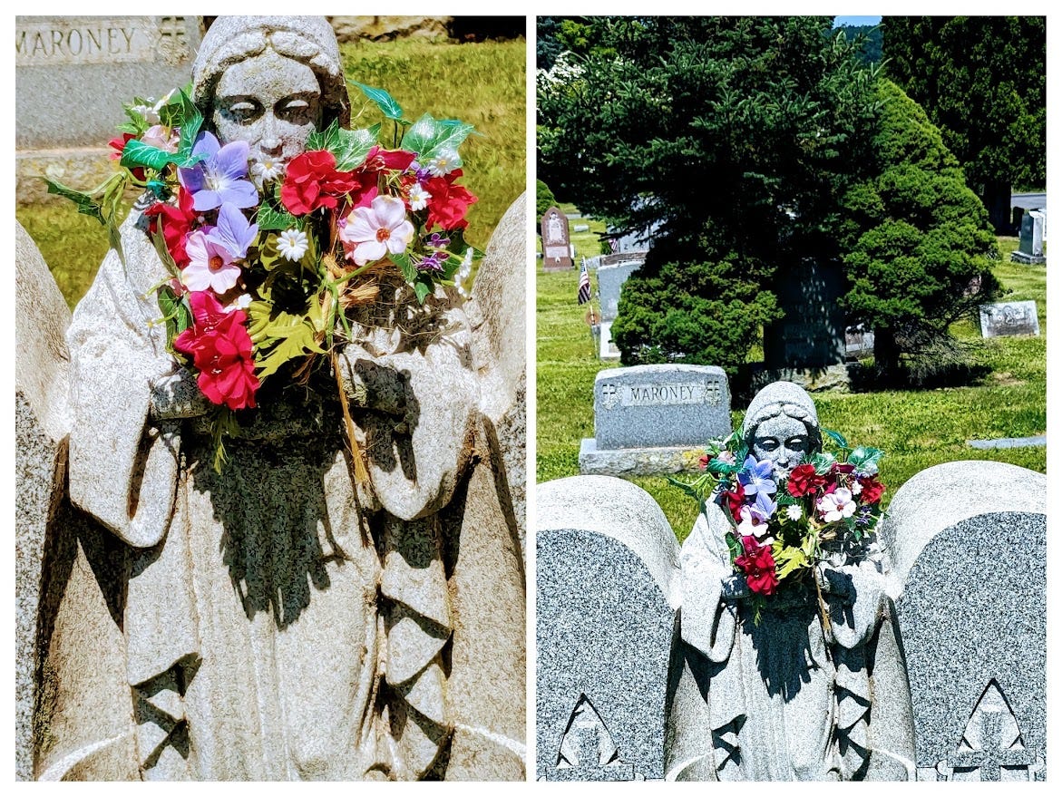 Heaven is never what you expected Con/Jur/d, 6/13/2024 The gopher runs dodges under the hedge as we walk up the cemetery hill, under full sun, she looks back as if to say, what did you expect