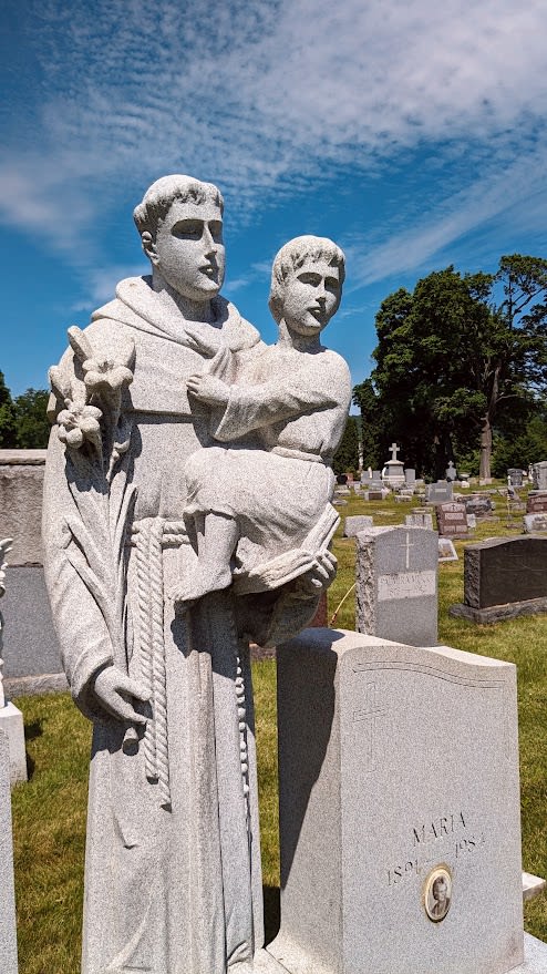 tombstones, with crosses saints, tons of granite concrete reliquaries