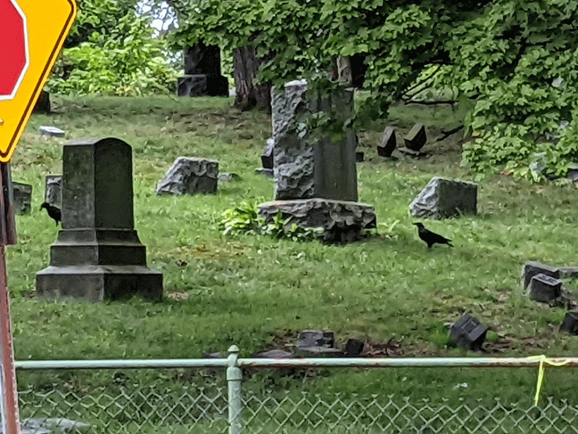 On the other side or the other side of the aforementioned — where the crows gather in their murders — is the cemetery I most often walk