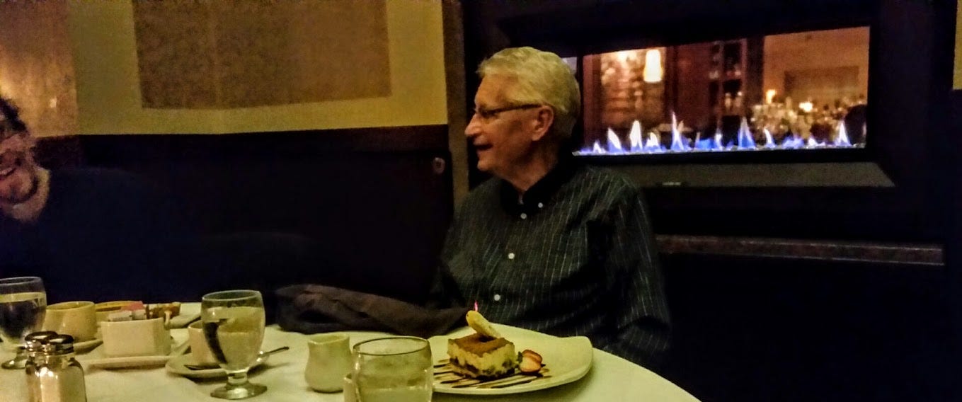 For a while — during the early intermediate stage of his dementia he became non-sectarian zen master — he couldn’t remember what he was angry about — or what to blame me for