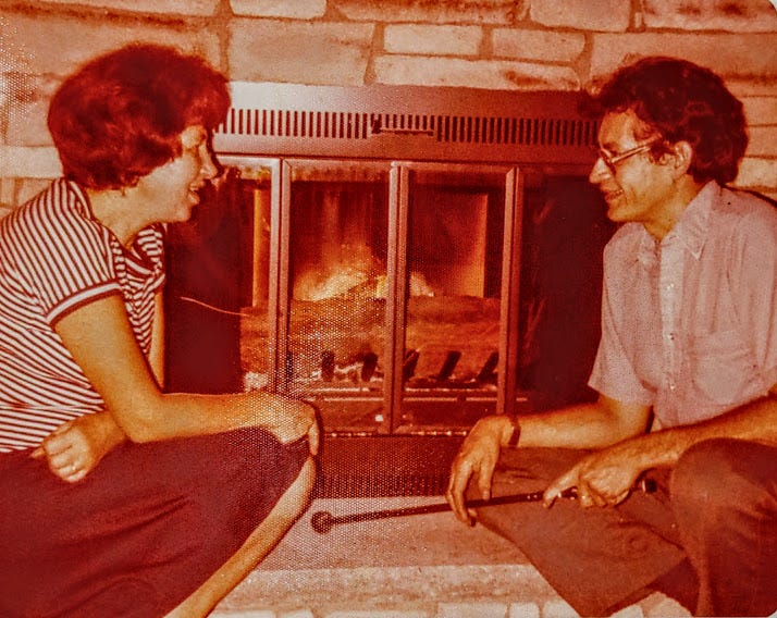 Our suburban lower-middle-class home was built without a fireplace — although they selected from a set of possible designs to be put on our freshly bulldozed ex-orchard lot — a fireplace was above the budget — knowing how much me - we - him like a good fire he built one himself just before I left for college