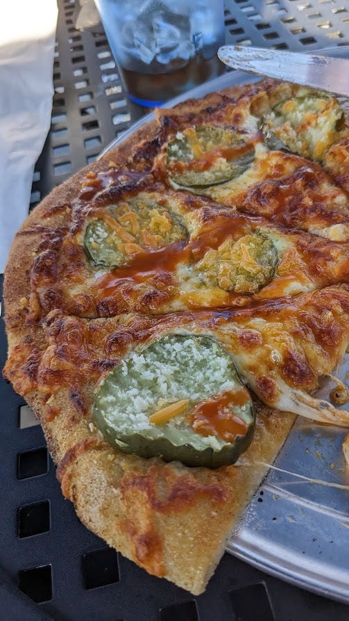 The sound poem the unseen creature made while I was eating a pickle pizza I got for free due to it being my birthday when it was too early for amphibians and lizards while the insects arising at this time of year shouldn’t have made a noise unknown and unknowable Con/Jur/d, 5/12/2023 wirrrrrrrrrrrrrrirrrrrrrrriiiiiiiiiic