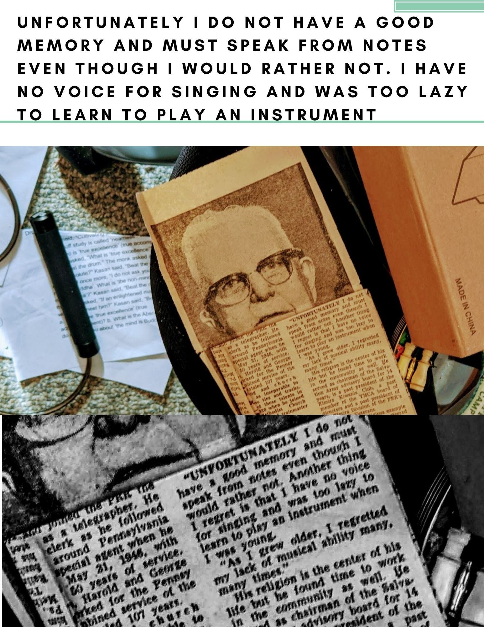 “For the last few weeks — my ancestor has judged me with his puritanical gaze — as I pass — I plan to be rid of this scrap as soon as I clean and organize the room — despite all the planning — it remains crowded with judgments — bad memory — and laziness”