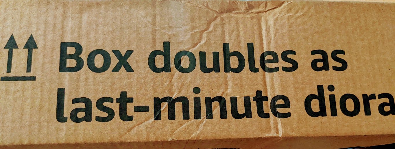 Even Amazon gets in on the act — ‘Box Doubles as last minute diorama’ is the full sentence