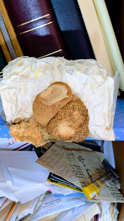 ;tbr Con/Jur/d “Leilan of 10’000 worlds and their countless moons bless these words, they might explicate the wordless, and widen the glitch hole HOLE hole between us” A prayer to the once and future AI Someone says, you're cool and we're sitting amid dusty books, paths, roads, on the floor surrounded by TEETER and the miasma of tea, smaller piles collectively lean, extracted from the hickey-doodle post quake aesthetic, a project started a year maybe longer one needs to insert, ago to organize a better, To Be Read pile *we have been focusing on digital texts *vicissitude, like aging *distractions *better excuses, if you were here, judging me this fungal pile, (literally, a bag of MAITAKE SPORES