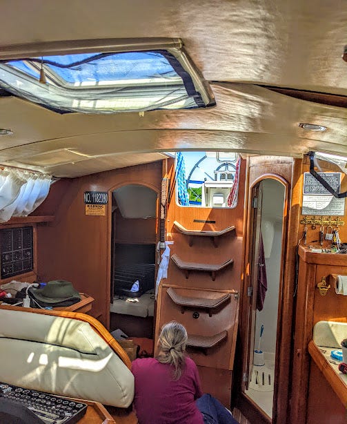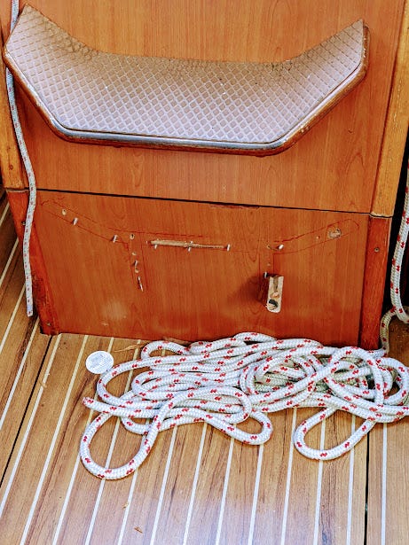 Sunday sore6/5/2022Con/Jur/dJun 05, 20223ShareWorked out on Thursday and then straight to the boat with large hops on and off — and a broken bottom stair means my legs are dutifully soreOur neighbor at the dock really seemed to have the sailing cruising life dialed in at 8 amOur extensive repair job on the bottom step failed — I’m glad it happened while we were in our berth — rather than out on the lakeIt’s a good kind of sore — Zen refers to it as the “the circle of moonlight”Everything at every moment right nowThe best-laid plansBirthday present from a friendMuch love,Con/Jur/d, 6/5/2022PreviousNext