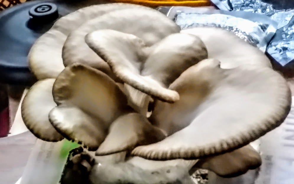 “I used Shitake, not Oyster” What I wanted to share, from one mycophile to another, especially when your cooking for a mycophobe, is my mushroom sauce recipe: Mixed mushrooms (This time I use a pound of just shitake) baked in aluminum foil or Mixed mushrooms (This time I use a pound of just shitake) baked in aluminum foil or lidded container with tahini, a little extra salt (sometimes garlic cloves & EVOO), and bake @ 350-400 Fahrenheit for 40 minutes. Then put in a blender with miso (This time I used Hikari white miso) and a little water. Blend ‘til the right consistency. careful not to add too much miso! I think it may blow your mind: