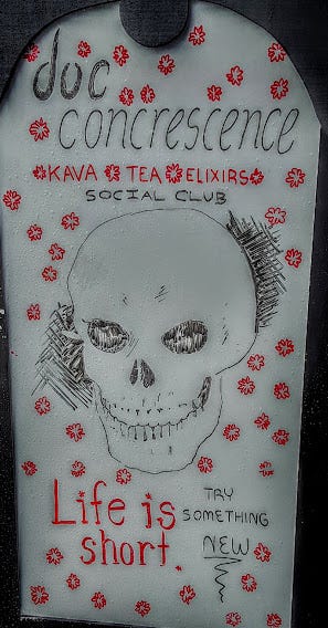 Drinking kava before all this started — on the boat — we rented in USVI — texted my brother and said, “Bula! Shudder!”