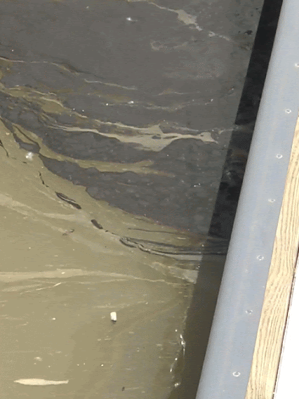 “You go past the Painted Ponds, their dirty oil-canvased waters are tethered to shore by a bright blue rope”