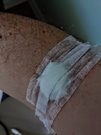 The Blood Work Con/Jur/d, 4/5/2022 My arm is sore paying for karma he left before, I stopped enjoying his rhymes in 6th grade, although it's appreciated in others, subtler rhythms dominate now The past and future, Mes, yes, although they don’t exist they’re a plurality, with motives irreconcilable with me now, “Still need to look away from the needle” a survival trait he left me from before when he’d have pushed through to a logical conclusion, “Without my fears, my mistakes, you wouldn’t be here now” He’s lying, even the One who comes after, bases too much on plans made in ignorance The day promises to be warm sunlight refracts through the dirty white shade, I’ve played Wordle, hope to go hiking This is the Blood Work, beat after beat after beat the warm red red black an inevitable next word Your voice heard before and later still, saying “This is it, nothing more.”