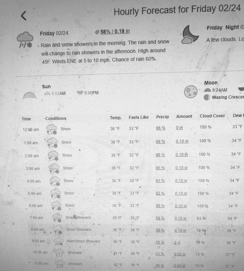 The weather forecast is not one that I'd relish reading or hearing. For some reason I have an Alexa and at night it turns off the light and tells me the current weather AND what the weather will be like for the rest of the night. In case I suddenly decide to take up jogging at 1 a.m., I guess.