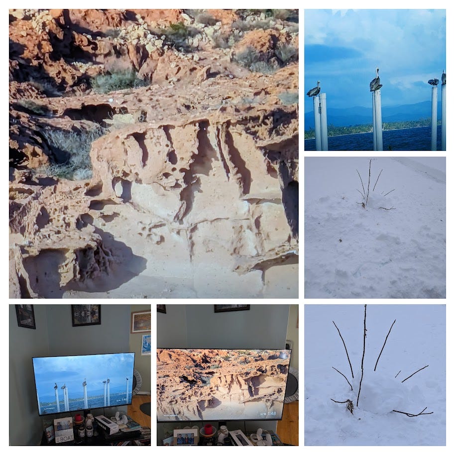 Wordle in a Winter Storm Watch 1/26/2026, Con/Jur/d We sit in the assigned seat in the living room, facing the TV And see the world of literary criticism, comment as a series of stairs Sleator's ‘ House of Stairs’ we read in grammar school, I can't believe kids read Dostoevsky now We didn't have that in 1974, most books were youngest age appropriate We donated our copy of The Hardy Boys Meet Bigfoot, because it was fantastique Saw someone writing a book on DH Lawrence and TS Eliot and knew it as a room upstairs Last night's Melville devotees reminded us of the D&D gang we played with on holiday *or Burners Downstairs, where we dreamt of marching and we screamed and screamed The basement, unless you live there is filled with unwashed memories We move to the bathroom, do Wordle signal where we are on the map If we want access to more than these floors we need to get reading or shovelling. *THE WORD OF THE DAY WAS: FREAK AHHHHHHHHHHHHHH!