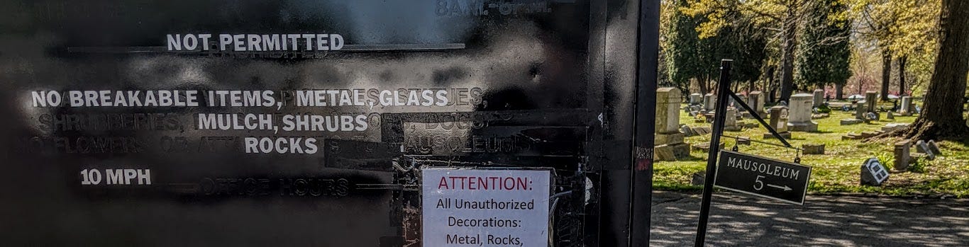 I’m irrationally afraid of the figure who is soliciting at the temple Are they undead? Not that there is anything wrong with being undead — But usually they leave the coffin behind A bigger question: What are they trying to sell? We are assured — the undead — cannot try to solicit us with breakable items — metal — glass — mulch — shrubs or rocks I — for one — am grateful — the undead will not be shilling shrubbery My fear has been replaced with sadness — What are the undead allowed to solicit? — How do they escape the Realm of Not? Well y’all, I certainly hope that clarifies things.