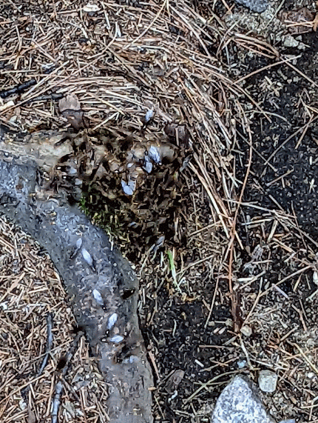 Somehow we failed to take out the kitchen garbage before we left for a week in the woods — The garbage was filled with fly maggots although there was no stench — these are flying ants — they’re prettier IMO