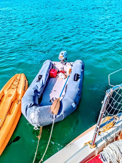 Yesterday’s wind is capable of rearranging just about anything: This dinghy leaked so badly we would need to refill it with air twice a day. When I brought the 20-gallon water jugs back and forth, the sharks would circle lazily like vultures waiting for the last rattle. And yet, I miss those mornings when the sides had become so deflated it appeared I was on a thin raft and the water would cover my feet but I would get to shore buy my morning coffee from the same bartender pouring whiskey for the locals at 7 am, and I would go back to the dinghy dock to watch rainbow-colored fish and pelicans divebombing them for a quick breakfast before the first tourists arrived.