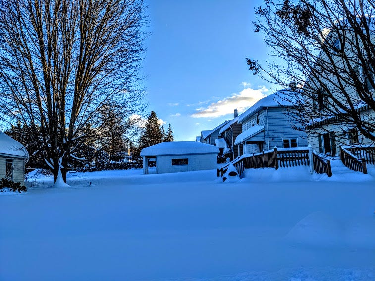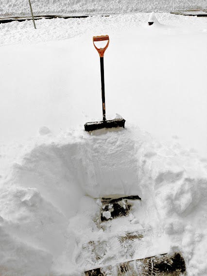 Beautiful! We had some shoveling this week too. Although your’s looks wetter, heavier, and deeper still. Much love. Om.