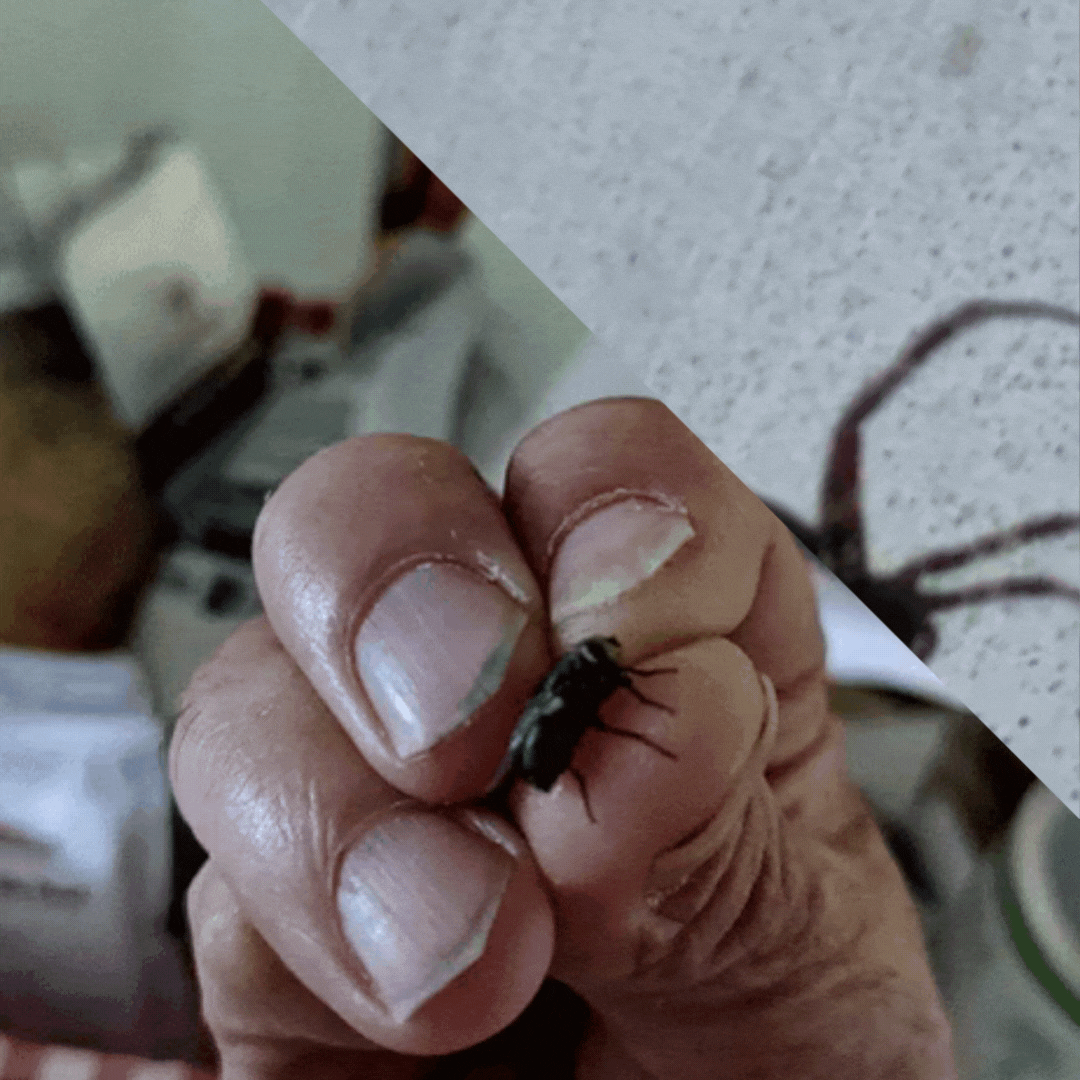 I discovered a large black spider crawling up my arm ready to make a web — after the instinctual due diligence of — Ah ew ew ew ew away away away — the groundhog was gone